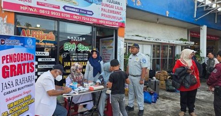 BUKITTINGGI — Jasa Raharja Cabang Bukittinggi kembali menghadirkan program preventif berbasis kesehatan dengan menggelar Pelayanan Kesehatan Gratis (MUKL) di Pool PO Epa Star dan PO Al Hijrah, Kamis (12/2). Kegiatan ini menyasar kru angkutan umum, penumpang, serta masyarakat sekitar guna memastikan kondisi fisik tetap prima demi mendukung keselamatan perjalanan.