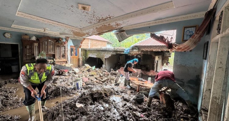 Kemudian Iptu Gunawan juga menyampaikan pada pagi harinya Tim posko melanjutkan kegiatan dengan membersihkan jalur transportasi dan rumah warga dari material lumpur serta sisa-sisa bencana untuk mengembalikan akses masyarakat.